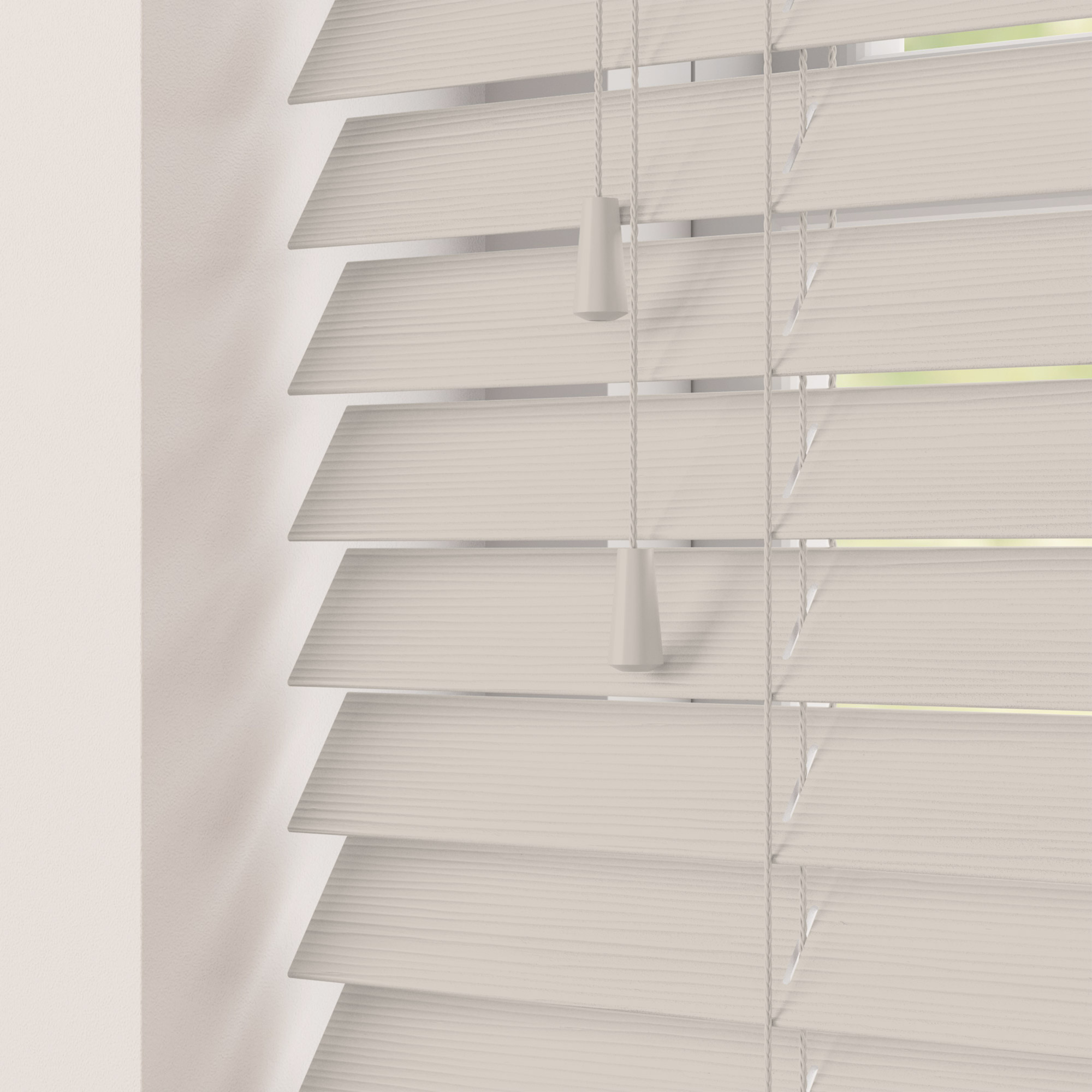 Add soft natural texture and refined style to your windows with our Mirage Fine Grain Fauxwood Venetian Blind, professionally made to measure by M2M Blinds. Finished in a warm neutral-cream shade with an authentic embossed woodgrain surface, Mirage Fine Grain offers the look of painted timber while keeping the clean, modern feel of a light interior palette.