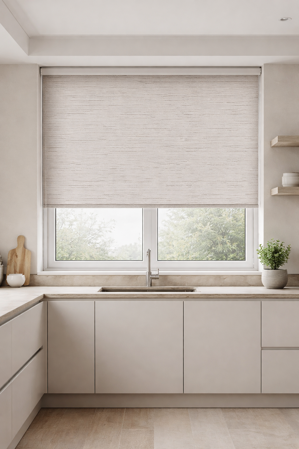 Create a clean, modern finish in your home with our Plaza Steel Roller Blind, expertly made to measure by M2M Blinds. Designed with Plaza’s signature tile-inspired linear pattern in a cool mid-steel grey, this fabric is the perfect balance of subtle texture and contemporary tone – ideal for kitchens, bathrooms, utility rooms and sleek modern interiors.